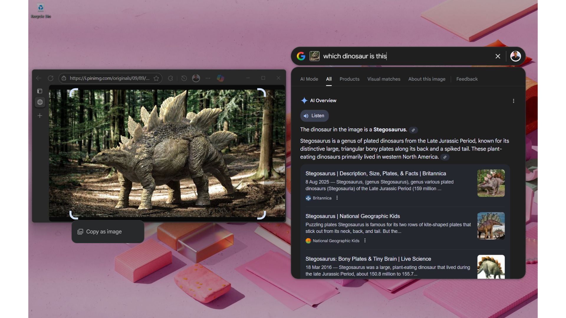 更具吸引力的是,该应用深度集成了谷歌的 AI 技术。应用内置的 AI 模式可以针对特定问题直接给出智能回答,同时配备了谷歌智能镜头(Google Lens)功能,实现了类似安卓系统“圈选即搜”的体验,允许用户框选屏幕上任意图像或文字进行识别、翻译或提问。
