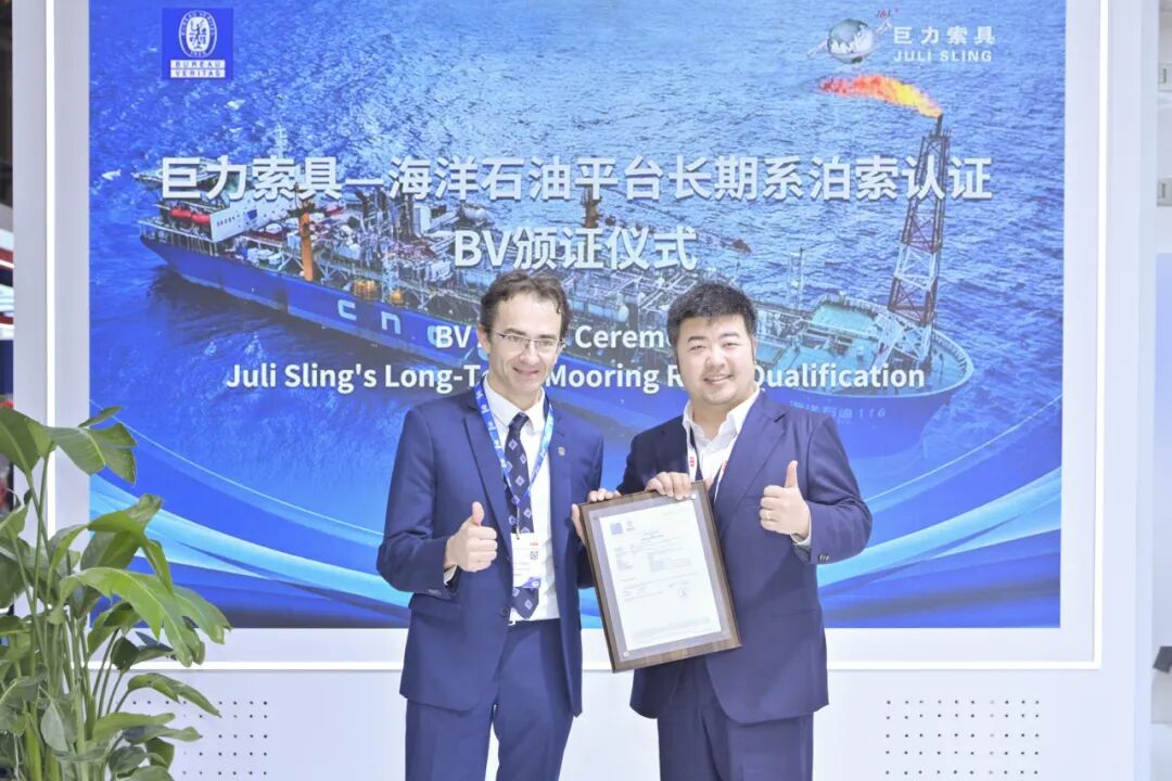 12月2日,2025中国国际海事会展(MARINTEC CHINA2025)盛大开幕。开展首日,全球领先的检验认证机构法国船级社(Bureau Veritas,简称BV)为巨力索具(002342)举行“海洋石油平台长期系泊索”专项认证证书颁证仪式,巨力索具总裁杨超亲临现场,代表公司接受了这份象征国际高标准认可的重要证书。